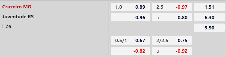 Thông tin tỷ lệ Cruzeiro vs Juventude: