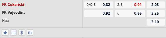 Thông tin tỷ lệ Cukaricki vs Vojvodina: