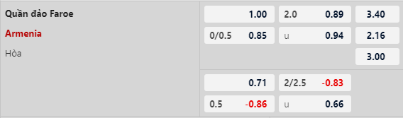 Thông tin tỷ lệ Đảo Faroe vs Armenia: