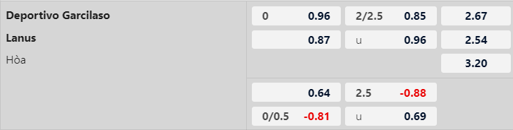 Dù được chơi trên sân nhà nhưng Deportivo Garcilaso cũng không được đánh giá cao. Họ chỉ có mức kèo 0:0 trước Lanus, kèo chấp không đáng tin cậy. Nhiều khả năng 2 đội sẽ chấp nhận chia điểm.