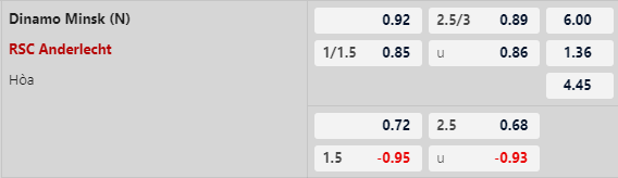 Anderlecht được đánh giá cao hơn rất nhiều ở trận đấu này với mức chấp lên tới -1 1/4 trước Dinamo Minsk bất chấp việc phải làm khách.