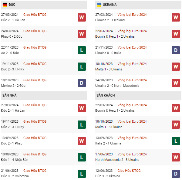 - Trên sân nhà, Đức thắng 2, hòa 1 trước Ukraine.