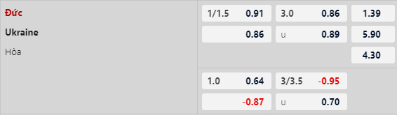 Thông tin tỷ lệ kèo bóng đá Đức vs Ukraine: