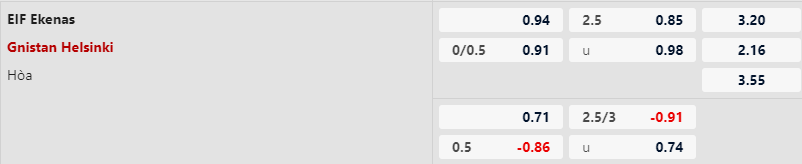 Trong khi đó Gnistan cũng chỉ thắng 1, hòa 3 và để thua 1 sau 5 trận gần đây. Thành tích sân khách của Gnistan cũng đang rất tệ với chỉ 2 trận hòa và để thua 3 trận sau 5 lần du đấu gần nhất. Được thi đấu trên sân nhà nhưng với vị thế của đội bét bảng nên EIF Ekenas vẫn bị đánh giá là đội cửa dưới với kèo chấp đang là +1/4.