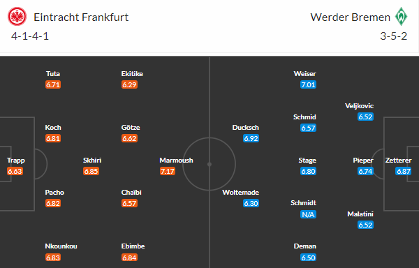 Đội hình dự kiến Eintracht Frankfurt vs Werder Bremen: