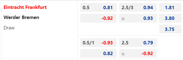 Thông tin kèo bóng đá Eintracht Frankfurt vs Werder Bremen: