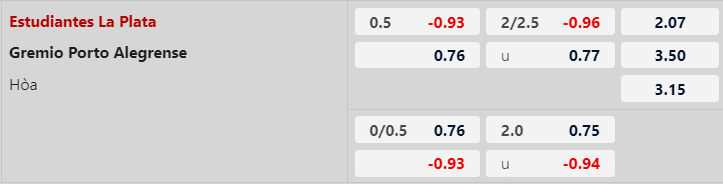 Thông tin tỷ lệ Estudiantes vs Gremio:
