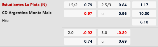 Estudiantes đã vượt mặt những Huracan, Boca Juniors và Defensa để đăng quang ngôi vô địch giữa tháng 12/2023. Phong độ của đội bóng này giai đoạn cuối mùa trước cũng là rất ấn tượng với 4/5 trận vượt kèo châu Á thành công. Trước một Monte Maiz ở đẳng cấp thấp hơn rất nhiều, Estudiantes khả năng sẽ có màn thị uy sức mạnh.