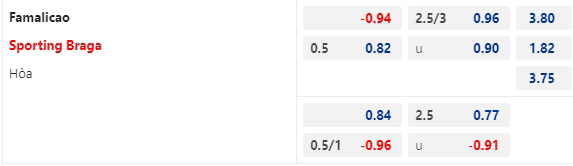 Trên sàn giao dịch châu Á, Sporting Braga chấp kèo Famalicao 1/2 trái dù phải thi đấu sân khách.