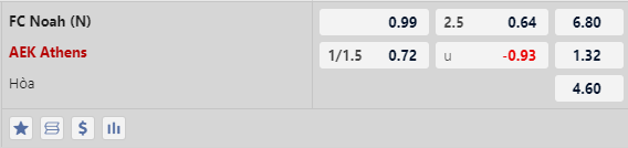 Thông tin tỷ lệ kèo FC Noah vs AEK Athens: