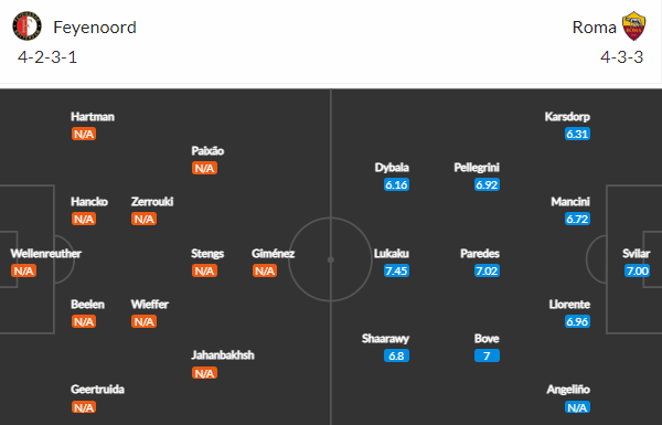 Đội hình dự kiến Feyenoord vs AS Roma: