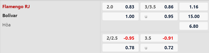 Thông tin tỷ lệ Flamengo vs Club Bolivar:
