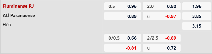Bên cạnh đó, Fluminense thắng kèo 4/6 trận sân nhà vừa qua thuộc khuôn khổ Serie A Brazil, bao gồm cả 1 chiến thắng khi chấp đội khách 1/2 trái. Thống kê tích cực này càng giúp Fluminense ‘ghi điểm’ với giới đầu tư khi tái đấu Athletico PR.