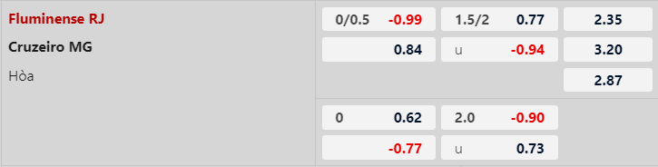 Thông tin tỷ lệ Fluminense vs Cruzeiro: