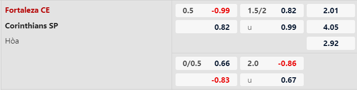 Thông tin tỷ lệ Fortaleza vs Corinthians: