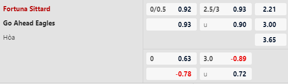 Thông tin tỷ lệ Fortuna Sittard vs GA Eagles: