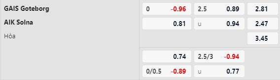 Thông tin tỷ lệ kèo GAIS vs AIK Solna: