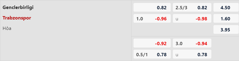 Thông tin tỷ lệ Genclerbirligi vs Trabzonspor: