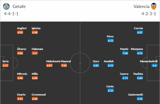 Đội hình dự kiến Getafe vs Valencia: