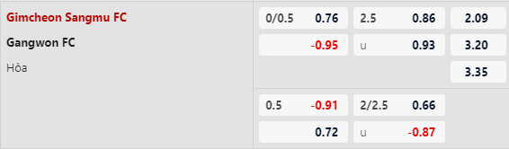Thông tin tỷ lệ Gimcheon Sangmu vs Gangwon: