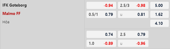 Thông tin tỷ lệ Goteborg vs Malmo: