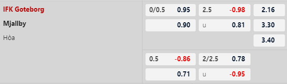 Thông tin tỷ lệ Goteborg vs Mjallby: