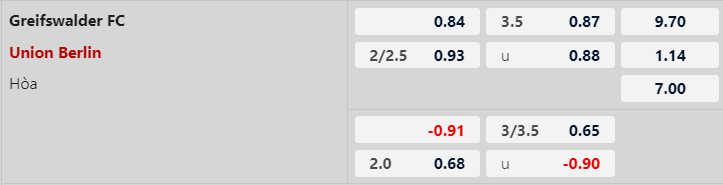 Thông tin tỷ lệ Greifswalder vs Union Berlin: