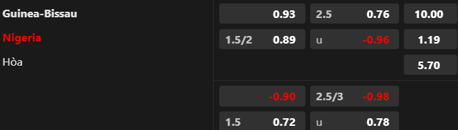 Thông tin tỷ lệ kèo Guinea-Bissau vs Nigeria: