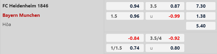 Thông tin tỷ lệ bóng đá Heidenheim vs Bayern Munich: