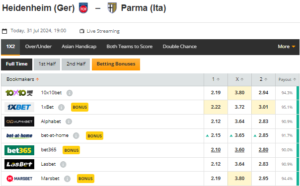 Thông tin tỷ lệ Heidenheim vs Parma: