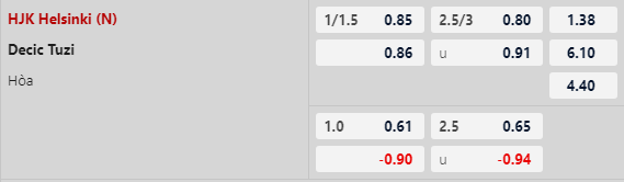 Thông tin tỷ lệ kèo HJK Helsinki vs Decic Tuzi: