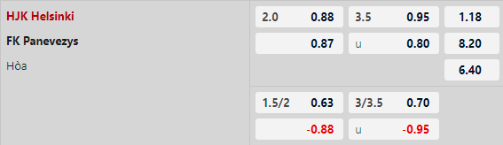Thông tin tỷ lệ kèo HJK Helsinki vs Panevezys: