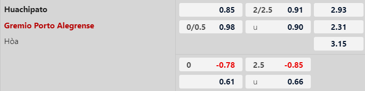 Thông tin tỷ lệ Huachipato vs Gremio: