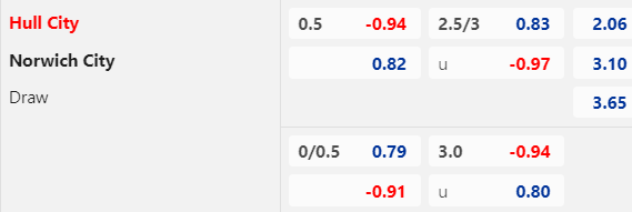 Thông tin tỷ lệ kèo Hull City vs Norwich: