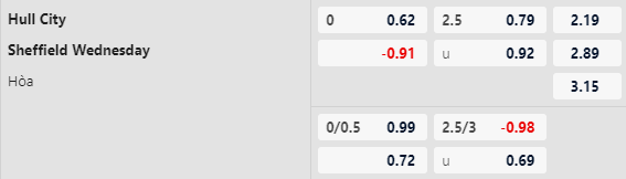 Thông tin tỷ lệ kèo Hull City vs Sheffield Wed: