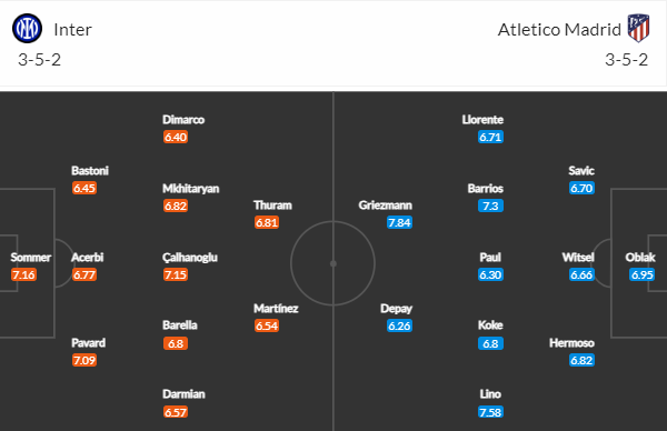 Đội hình dự kiến Inter Milan vs Atletico Madrid:
