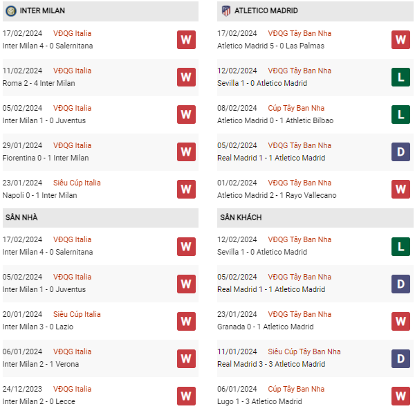 Vẫn biết Atletico Madrid khác hoàn toàn so với những đối thủ gần đây của Inter Milan nhưng điều quan trọng là đoàn quân HLV Inzaghi đang có sự tự tin cao độ. Trên sân nhà, đội bóng thành Milan đã thắng 16/20 trận gần đây.