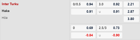 Ngay cả sân nhà cũng không còn là điểm tựa cho Inter Turku. Trận gần nhất chơi tại sào huyệt của mình, thầy trò HLV Vesa Vasara thất thủ 0-1 trước HJK Helsinki, đứt luôn mạch 6 trận sân nhà bất bại. Inter Turku vẫn được đánh giá cao hơn (-1/4) trận này nhưng Haka, không thua 4/5 chuyến làm khách vừa qua, đủ tốt để ra về với ít nhất 1 điểm.