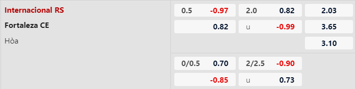 Sàn giao dịch châu Á ghi nhận mức kèo Internacional chấp 1/4 trái, tỷ lệ mà đội bóng này không có duyên khi chấp kèo tương tự ở những trận đấu sân nhà. Cụ thể 4 trận gần nhất xuất hiện Internacional khiến nhà đầu tư ôm hận ở 3 trận. Bên phần sân đối diện, Fortaleza đang sở hữu thành tích chỉ thua kèo 1/13 trận gần đây, trong đó thắng kèo 10 trận.