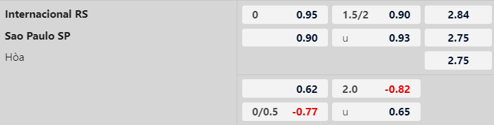 Thông tin tỷ lệ Internacional vs Sao Paulo: