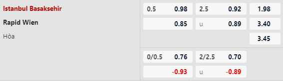 Thông tin tỷ lệ Istanbul Basaksehir vs Rapid Wien: