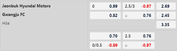 Thông tin tỷ lệ Jeonbuk Hyundai vs Gwangju: