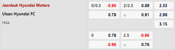 Thông tin tỷ lệ Jeonbuk Hyundai vs Ulsan Hyundai: