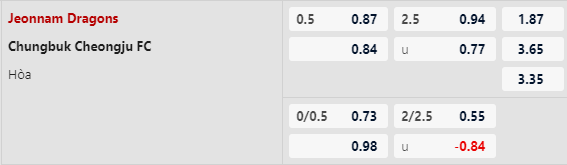 Thông tin tỷ lệ Jeonnam Dragons vs Chungbuk Cheongju: