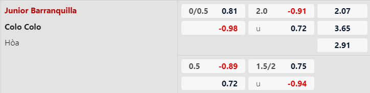 Thông tin tỷ lệ Junior Barranquilla vs Colo Colo: