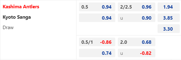 Thông tin tỷ lệ Kashima Antlers vs Kyoto Sanga: