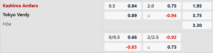Thông tin tỷ lệ Kashima Antlers vs Tokyo Verdy: