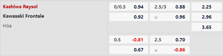 Thông tin tỷ lệ Kashiwa Reysol vs Kawasaki Frontale: