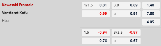 Thông tin tỷ lệ Kawasaki Frontale vs Ventforet Kofu: