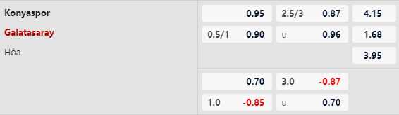 Thông tin tỷ lệ Konyaspor vs Galatasaray: